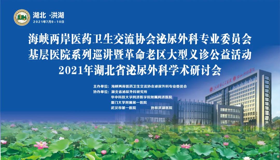 为促进海峡两岸医药卫生交流协会泌尿外科专业委员会(CSCU)对基层医院卫生事业的支持,提升基层医疗服务能力,开展医疗服务一体化帮扶学术巡讲活动,携手两岸知名泌尿外科专家,为老区人民的泌尿外科常见病、多发病进行诊疗和咨询,彰显并弘扬“两岸医携手、同胞爱无疆”的职业精神,同时举办相关学术专题讲座和临床带教等活动,对老区的数百名基层医生进行临床技能提升等培训工作。海峡两岸医药卫生交流协会泌尿外科专业委员会(CSCU)基层医院系列巡讲(湖北·洪湖站)暨2021年革命老区大型义诊公益活动于2021年7月10日在协和洪湖医院、洪湖市人民医院学术报告厅举行。