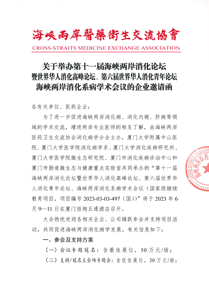 关于举办第十一届海峡两岸消化论坛的企业邀请函