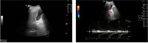 ? 门静脉主干内径12mm,门静脉血流信号充填良好,为单色向肝血流,PSV 72cm/s