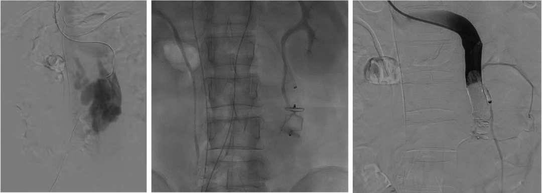 超选至肠系膜下静脉异常分流道,予以栓塞18mm的Amplatzer vascular plug及适量25%生物胶,造影示异常分流道消失