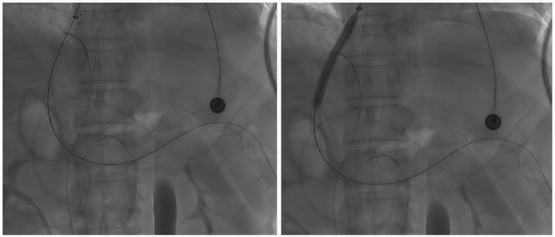 仔细评估术前CT可知,该患者的异常分流道的出口并不引流至肾上腺静脉,故难以通过常规BRTO途径栓塞,因而对于该患者团队仔细评估后决定采用TIPS联合异常分流道近端栓塞的方法。既往对于此类粗大分流道,无论是单纯使用可控弹簧圈或是弹簧圈联合组织胶水都存在栓塞效率或是安全性的不足,该患者使用血管塞封堵减缓血流后,在血管塞细密的网孔阻隔下能够有效防止补充栓塞的组织胶逃逸,进而获得良好的栓塞效果及效率。