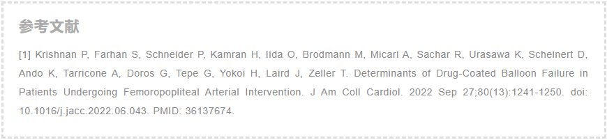 研究人员从目前的研究中调查了股腘动脉DCB治疗失败的预测因素得出以下结论: