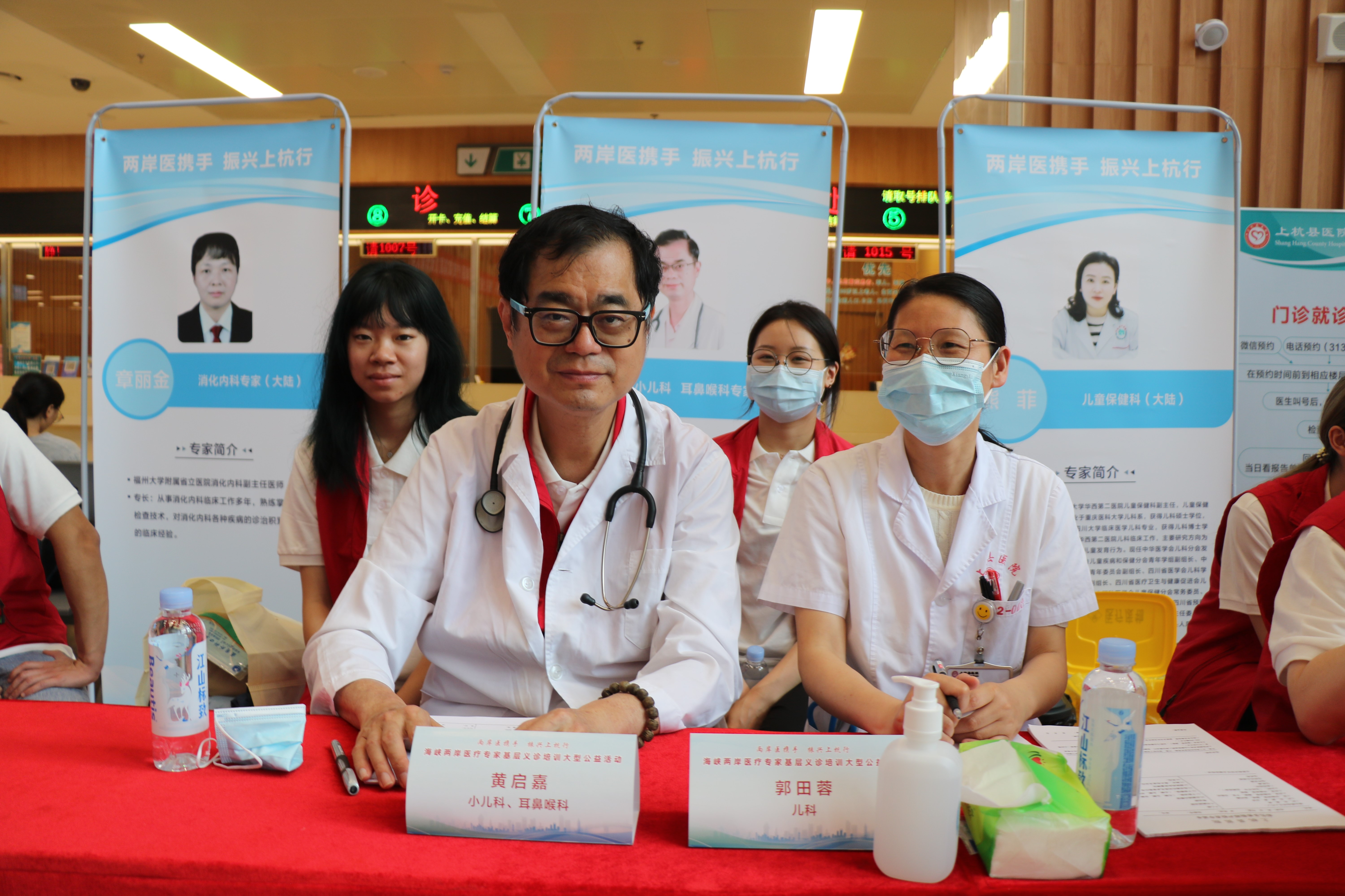 这次义诊,众多来自海峡两岸的医疗专家齐聚一堂,他们丰富的经验和精湛的医术都让我深感敬佩。我被分配到了小儿科、耳鼻喉科的区域,协助的是来自台湾嘉光诊所的黄启嘉院长,一见到他就觉得特别特别亲切!前来看诊的患者络绎不绝,其中有一位叔叔给我留下了特别深刻的印象,他慢慢坐到椅子上,跟黄院长说耳朵有点不舒服,只见黄院长只是试探了几个地方并且询问有没有痛感,他便知道按摩哪个穴位便可以解决这个问题!当时的我十分震惊,因为第一次真的近距离接触到最专业的医学家看诊速度原来这么快,并且也增加了一些从未得知的知识?;圃撼つ托牡叵蚴迨褰馐筒∏椋⒁恢痹谥馗窗锼茨ρㄎ唤痰既绾握业秸返难ㄎ晃恢??;褂泻芏嗉页ぱ试撼ひ恍┕赜谌绯鱿帜承┎皇驶岵换嵊跋旌⒆拥纳砀哂胫橇Ψ⒂侍猓撼ひ灰挥枰阅托慕馐筒⒏隽瞬煌慕饩霭旆?,还会很温柔的摸一下小孩子的头,安抚家长的情绪与担忧。在我认真聆听院长的讲解,学习如何与患者沟通,了解他们的需求和担忧过程中,学到了更多知识点与常识。那一刻,我深刻地意识到,作为一名医生,不仅要有扎实的专业知识,更要有耐心和爱心,去关心每一位患者。
