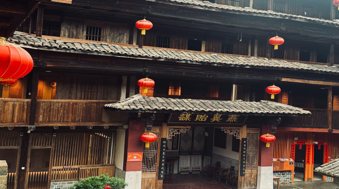 从古田会议会址离开后,我们稍作休息,便继续乘坐大巴前往福建土楼永定景区。从古田出发,大巴在蜿蜒的山道上行驶了两个小时。当车转过最后一个急弯时,整片山谷突然铺开了一幅立体的水墨画:圆形土楼如天工碾就的玉璧,方形土楼似铁铸的印章,错落分布在梯田与溪流之间。对于土楼,我早有耳闻,它独特的建筑风格和深厚的文化底蕴一直吸引着我。在走去土楼的路上,我们也欣赏到了优美的自然风光,看见了非常美的竹林!当看到那一座座远远地屹立在山间的土楼时,我被眼前的景象震撼了。这些土楼或圆或方,错落有致地分布在山水之间,与周围的自然环境融为一体,宛如一幅美丽的画卷。永定土楼是客家传统民居建筑的典型代表之一,距今已有数百年的历史。它不仅是客家人居住的场所,更是客家文化的重要载体。在参观土楼的过程中,我们遇到了许多热情的客家人,向我们详细介绍了土楼的建造历史、建筑特色以及客家文化,那些屹立数百年的夯土建筑,用独特的八卦布局、聚族而居的生存智慧,向我们诉说着客家人“崇文重教、敦亲睦族”的文化基因。当我走进土楼,听江阿婆讲述土楼里“一堂孝友是家声”的家风传承,看楹联上“继世诗书皆祖泽”的儒家教诲,忽然明白:无论是海峡两岸的医学交流,还是对红色精神的传承,其本质都是对中华优秀传统文化的一脉相承。而海医会精心设计的这条“医学+文化”线路,正是用最生动的方式,让我们在实践中理解“根”的意义、“魂”的内涵。原来,客家土楼的建造与客家人的历史、文化密切相连。客家人是从中原南迁的汉人,为了防御外敌、仇家、野兽以及化解与原住民的摩擦,他们选择了聚族而居的生存方式,建造了居住防御一体的土楼。在土楼里,我们还品尝了当地的茶叶,参观了烟刀。原以为烟刀就是一把刀,进去看了之后才知道原来是这边烟草的早期叫法,我深深地感受到了客家文化的独特魅力。出来的时候大家一起品尝了当地人做的石花和仙草,口感超好!