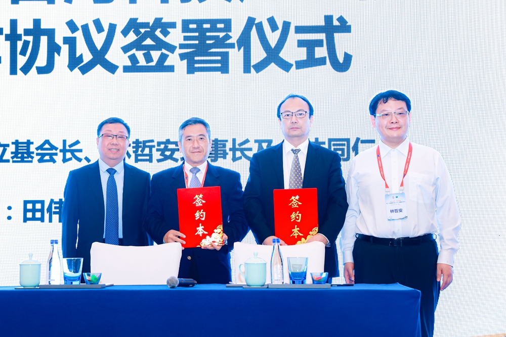 2024年6月15日,在第十六届海峡论坛——卫生与健康分论坛肿瘤防治分会场上,在海峡两岸医药卫生交流协会(以下简称“海医会”)肿瘤学分会主任委员吴健雄和台湾科技产业协会理事长、台湾财团法人国际医学科学研究基金会执行董事林哲安见证下,海医会副会长兼秘书长田伟和台湾财团法人国际医学科学研究基金会秘书长周明宇签署了《海峡两岸医药卫生交流协会与台湾科技产业协会/医疗财团法人国际医学科学研究基金会交流合作备忘录》。