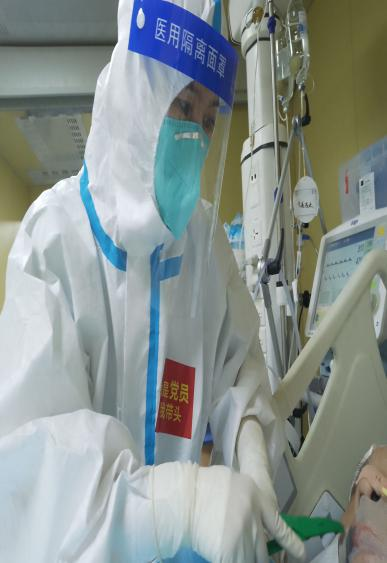 在刚进入病房工作的第一天,大家还处于穿防护感到闷热、憋气、对环境的不适应、面对阳性患者有压力阶段,李育玲主任就遇上了需要抢救的紧急情况?;?/font>者突发心脏骤停,面色苍白,呼之不应,颈动脉搏动消失,她做为一名近20年党龄的党员,来不及思考,来不及害怕,白衣天使的使命感让她冲在了前面,按压、插管、推药、配合医生操作,最后患者抢救成功。