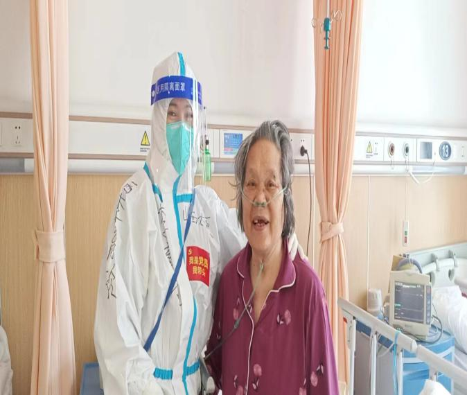 “我队所接管的同济大学附属上海第四人民医院的19病区(医护整建制管理)和护理独立管理15重症病区共的新冠患者病区,80岁以上老年患者占60%以上,11位年龄在百岁以上。高龄合并多种基础疾病,加之语言沟通不畅、情绪极端、拒绝治疗………这就更需要我们心系患者,从专业、专心、专注三方面去救治患者。”李育玲自抵达上海展开救治工作以来,从注重病情观察与预见性处置(专注),重视患者特殊心理(专心),与加强多专业合作(专业)三方面着手,书写着“晋”心守“沪”,同舟共济的温暖故事。