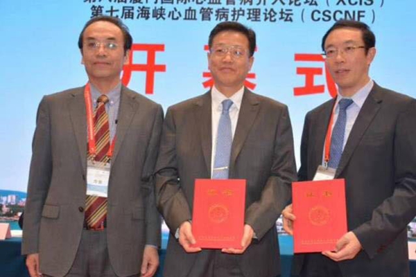 原国家卫生部副部长、中国医师协会终身名誉会长殷大奎、海峡两岸医药卫生交流协会副会长方俊、福建省卫生计生委副主任王寿碧、厦门市副市长韩景义、厦门市市政府副秘书长沈顺文、中国医学科学院阜外医院副院长杨跃进、厦门大学附属心血管病医院院长王焱、海峡两岸医药卫生交流协会副秘书长田伟、厦门市卫生计生委党组书记姚冠华、台湾阳明大学教授常敏之、香港伊丽沙伯医院教授蒋忠想,海峡两岸卫生交流协会心血管专业委员会副主任委员、福建省协和医院心内