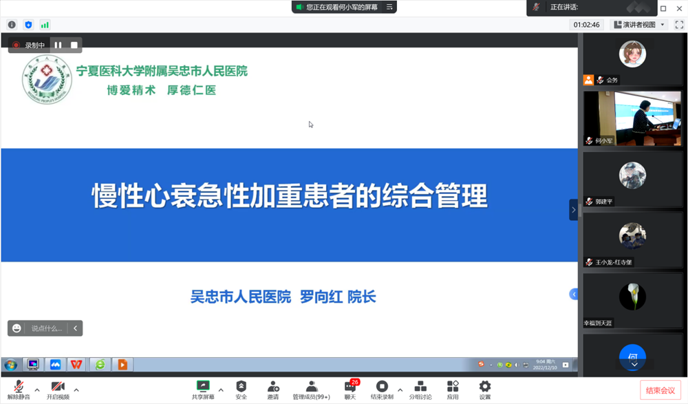 2022年12月10日,由海峡两岸医药卫生交流协会心脏康复专业委员会主办的第四届“水韵吴忠”学术会议在线上召开。