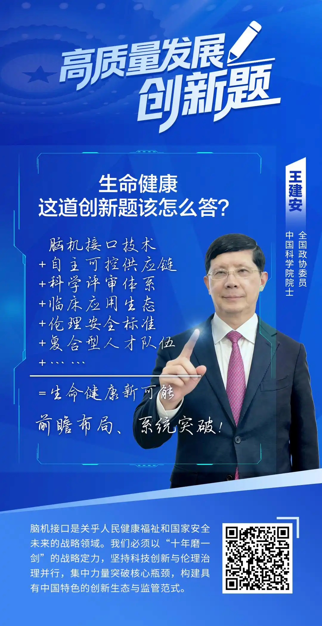 全国政协委员王建安:前瞻布局脑机接口,答好生命健康的创新题