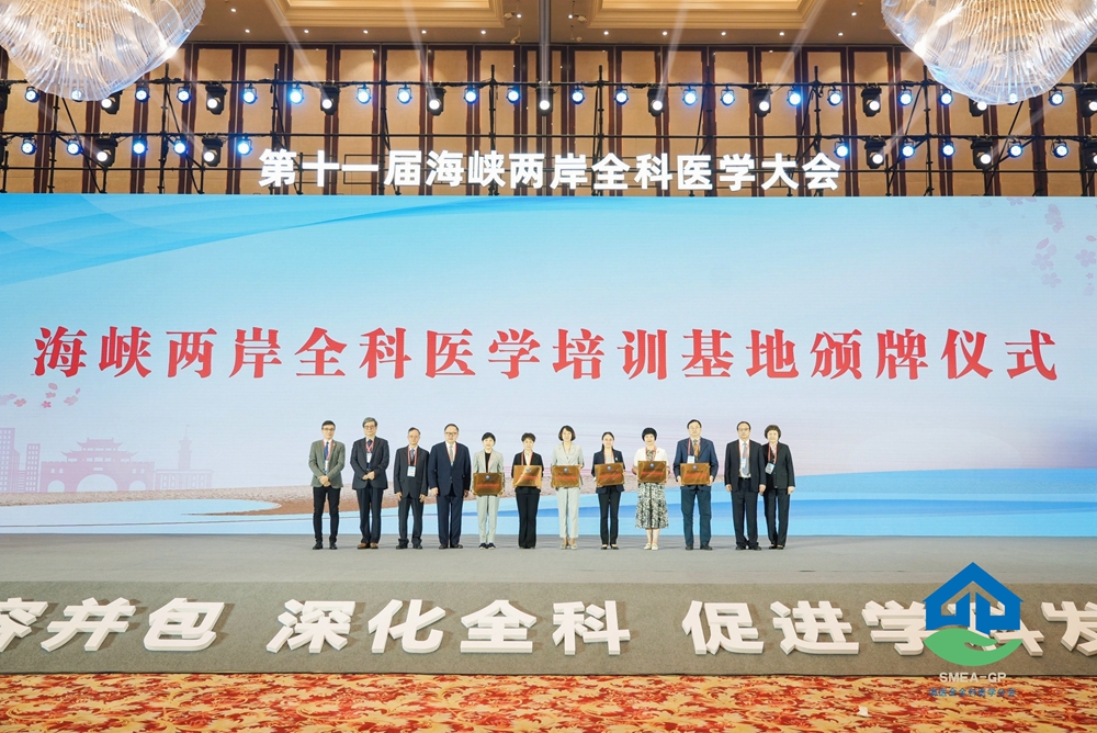 为了深化全科医学教育培训的合作与交流,促进全科医学领域教育资源的互联互通,开阔全科培训合作与交流视野,提升全科医疗服务能力,推动全科医学学科建设,海峡两岸医药卫生交流协会全科医学分会经过严格遴选评审,设立了第一批“海峡两岸全科医学培训交流基地”。海峡两岸医药卫生交流协会田伟副会长,大会主席、分会会长祝墡珠教授,大会主席、WONCA前任主席李国栋教授,台湾家庭医学医学会理事长黄振国教授,澳门全科医生学会会长冯浩明教授,香港家庭医学学院副院长刘浩濂教授上台,为第一批“海峡两岸全科医学培训交流基地”负责人,复旦大学附属中山医院全科医学科潘志刚主任、海南医学院第一附属医院全科医学科顾申红主任、中南大学湘雅三医院全科医学科姚晨姣主任、宁夏医科大学总医院全科医学科崔丽萍主任、四川大学华西医院全科住培基地廖晓阳主任、浙江省人民医院全科医学科陈曦主任进行颁牌。