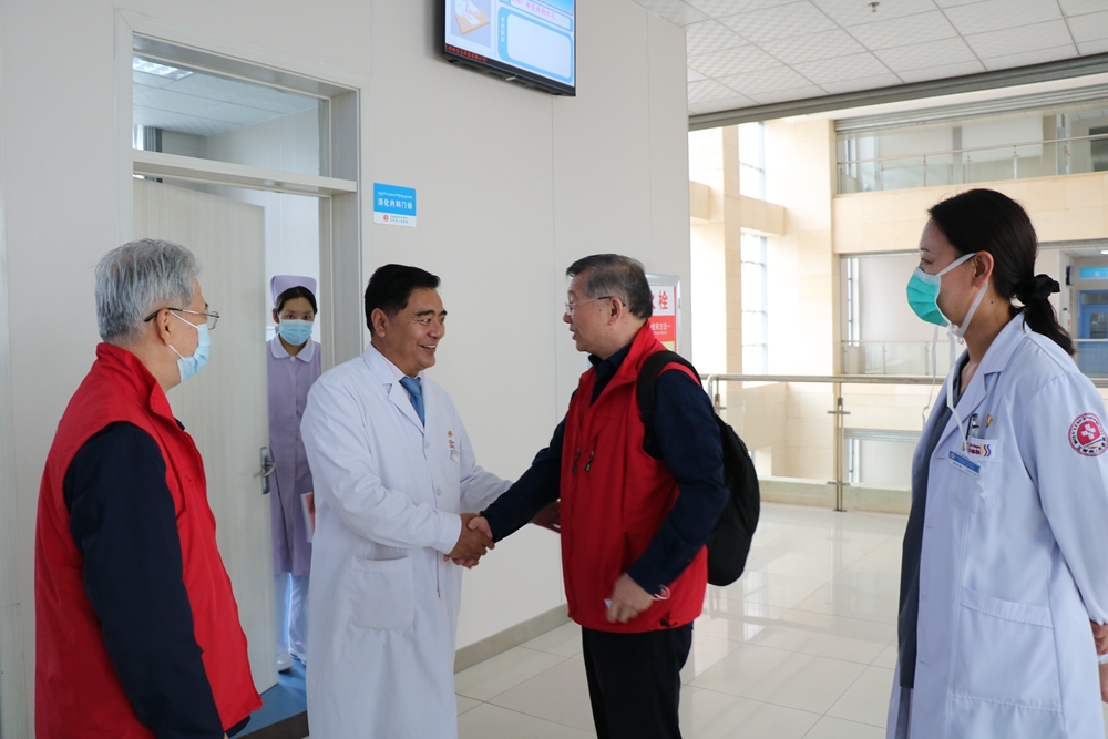 为了加强对三区三州基层医院的临床技能定点帮扶工作,落实国家卫健委推动地区间同质化医疗服务的工作部署,建立常态化帮扶机制。海峡两岸医药卫生交流协会消化内镜分会会长、全国知名专家、北京清华长庚医院消化内科部部长姜泊教授与玉树州人民医院签订建立名医工作室合作协议,在医院建立姜泊名医工作室。当日上午,在海医会会长王立基和玉树州人民医院党委书记索南多杰的陪同下,姜泊教授视察了医院的内镜室,对内镜的发展提出指导意见。计划用三年时间,将玉树州人民医院消化内镜中心建设成青海省区域消化疾病诊治中心、海峡两岸医药卫生交流协会消化内镜诊治规范基地,完善内镜设施建设,培养人才,推动高水平医疗技术落地,使其成为区域性消化和消化内镜人才培养基地。